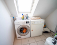 Gästezimmer. Ein praktischer Abstellraum mit Waschmaschiene, Trockner und Heizungsanlage.