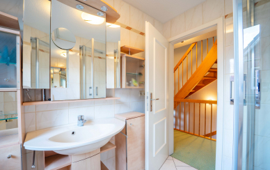 Im ersten Obergeschoss befindet sich das Badezimmer mit
