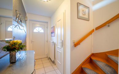 Über die Treppe im Flur kommen Sie in die oberen Stockwerke.