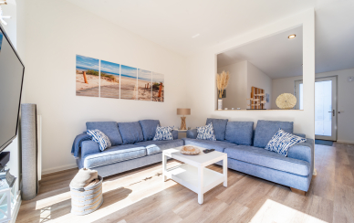 Die gemütliche große Wohnlandschaft lädt zum Verweilen ein.