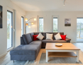 Alle Räume sind durch die bodentiefen Fenster lichtdurchflutet und mit elektrischen Außenrolläden und Fußbodenheizung ausgestattet.