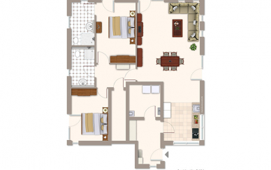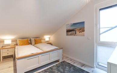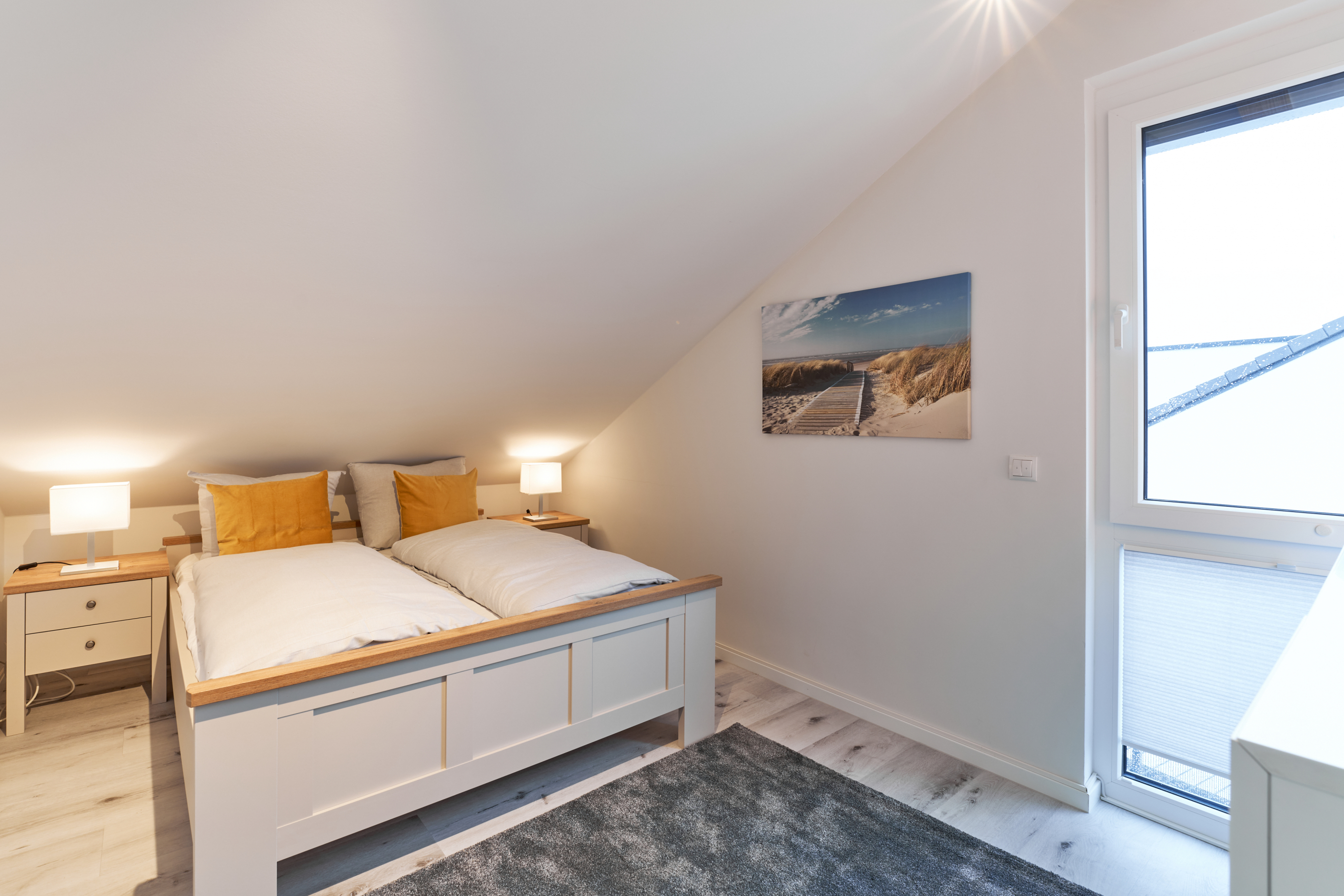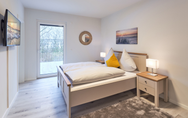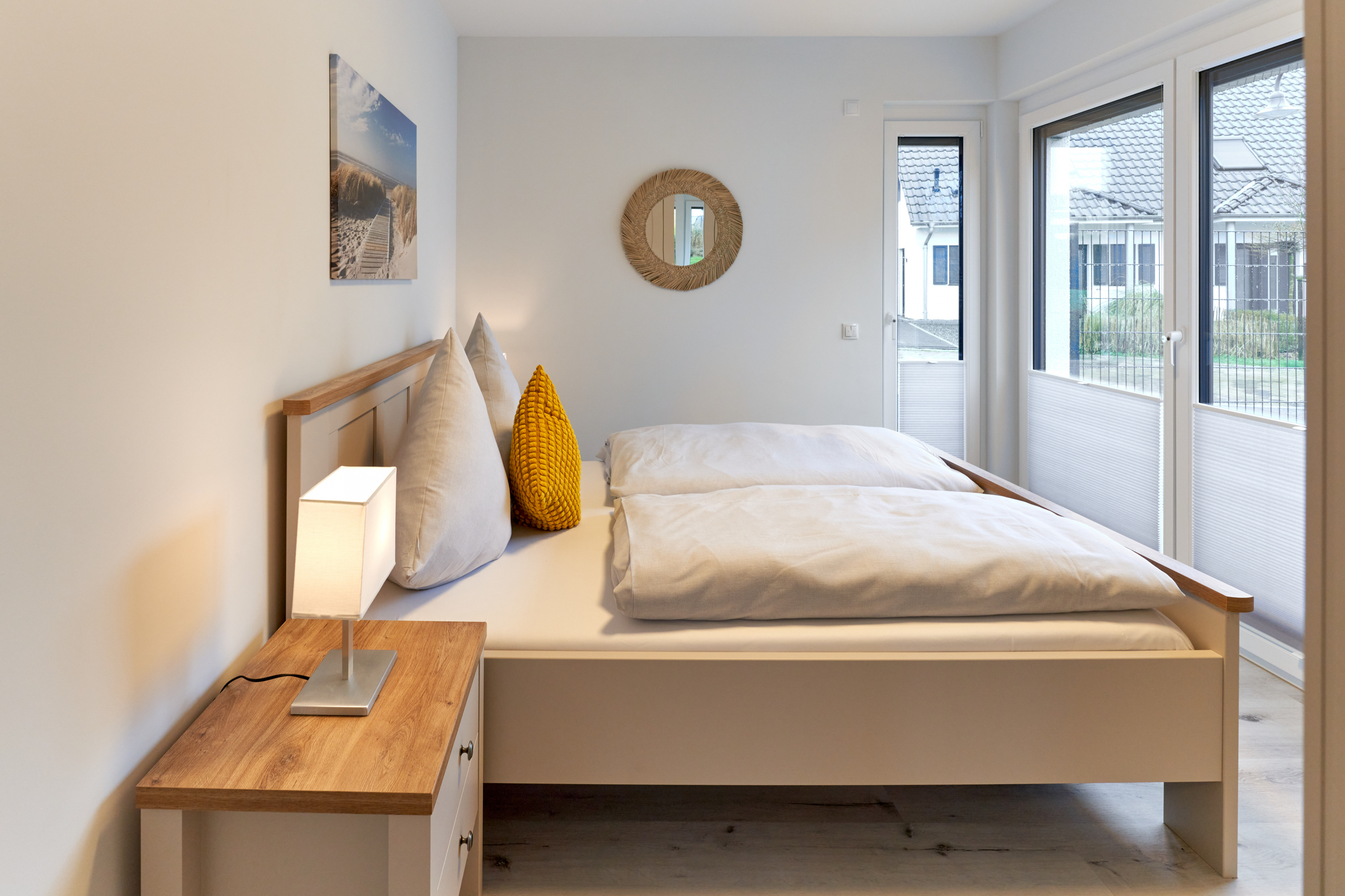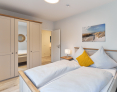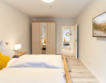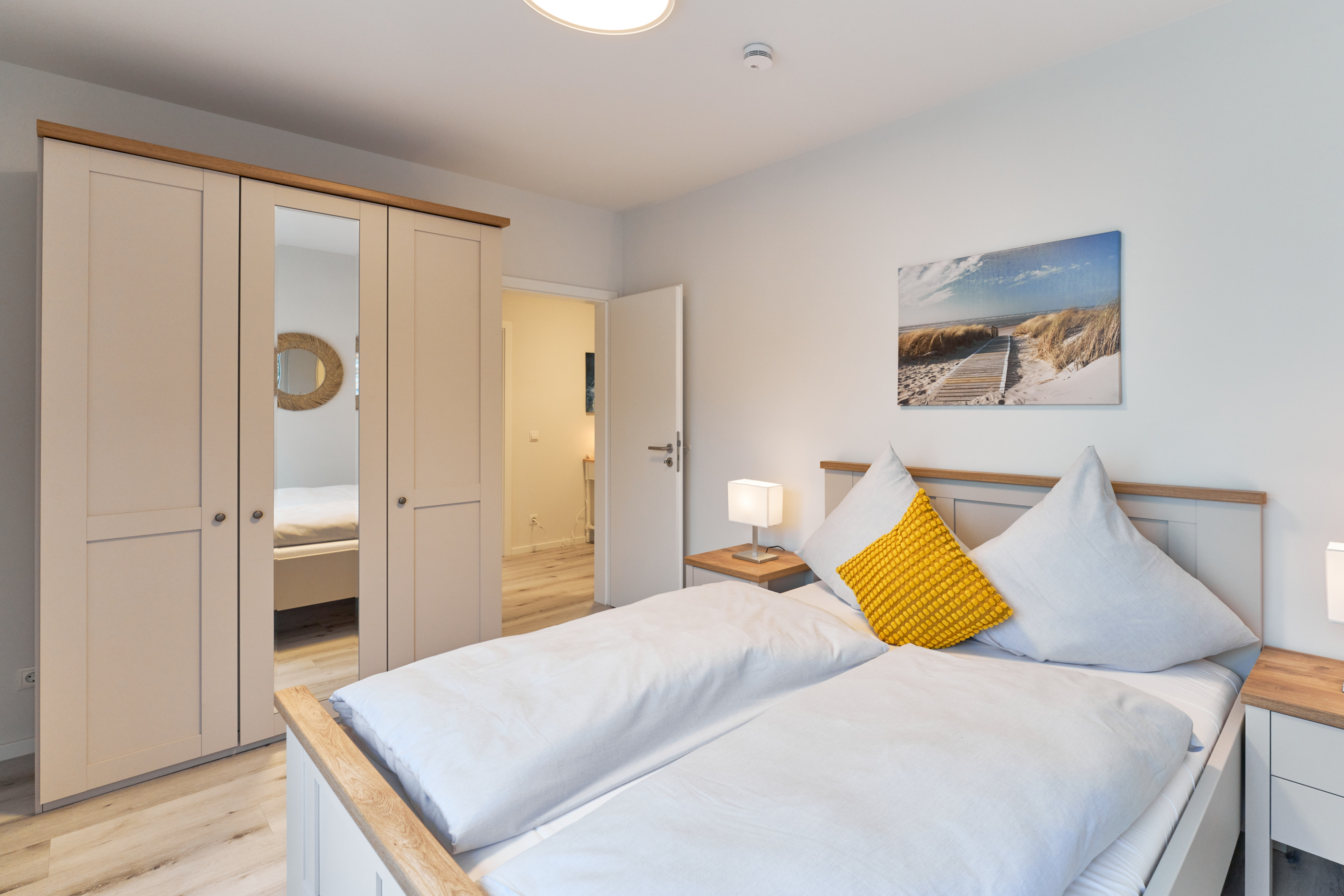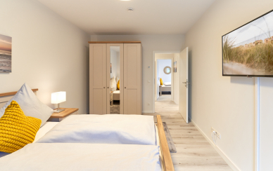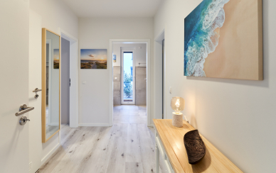 Vom Wohnbereich abgehend gelangen Sie in einen Vorflur. Von hier kommen Sie in ein zweites Schlafzimmer. Der zweite Duschbereich geht durch eine Tür vom Vorflur ab.