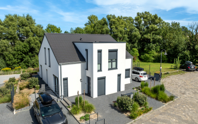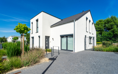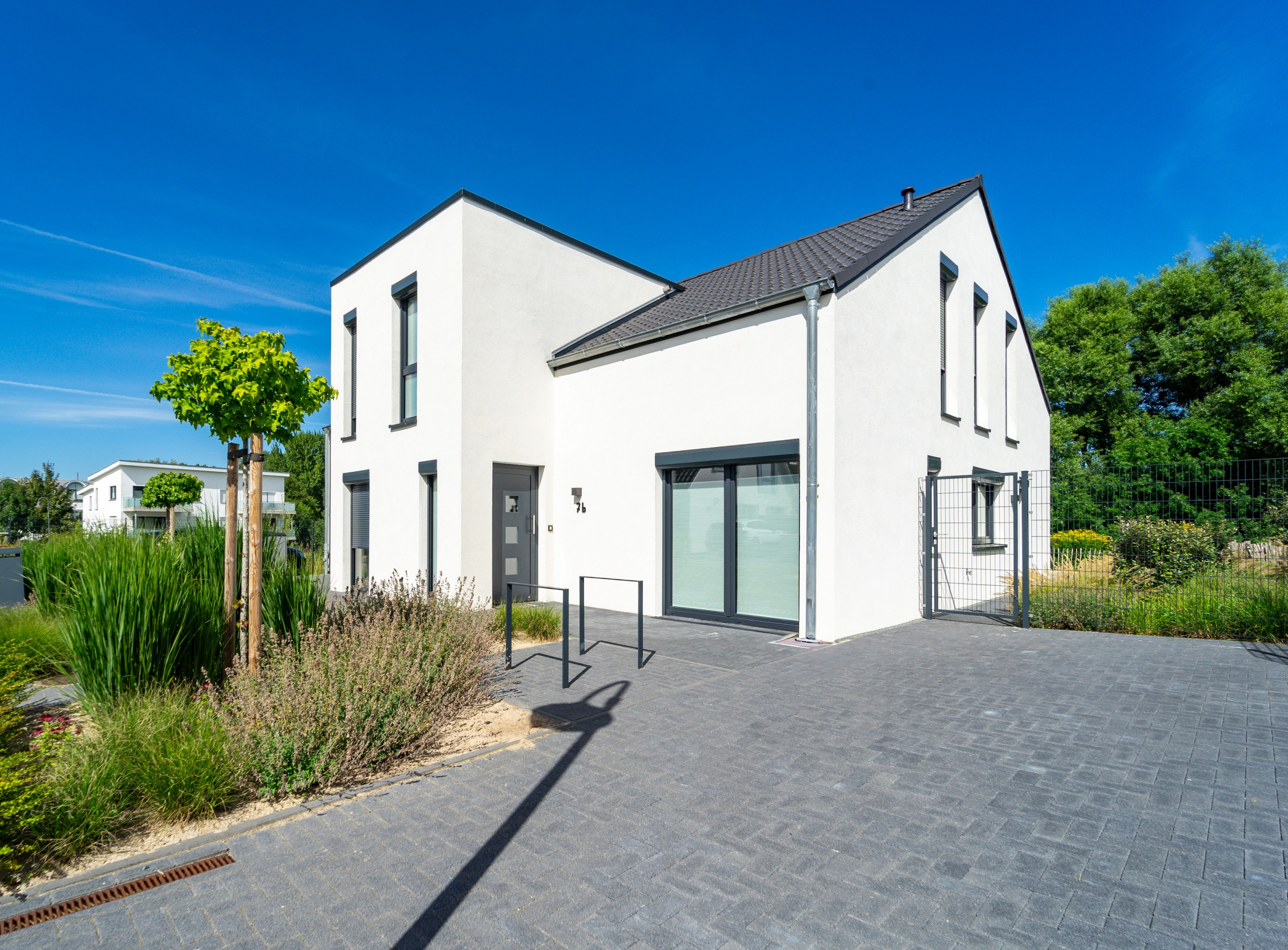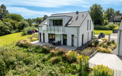 Das Haus ist mit einer Luft-Wärmepumpe ausgestattet.